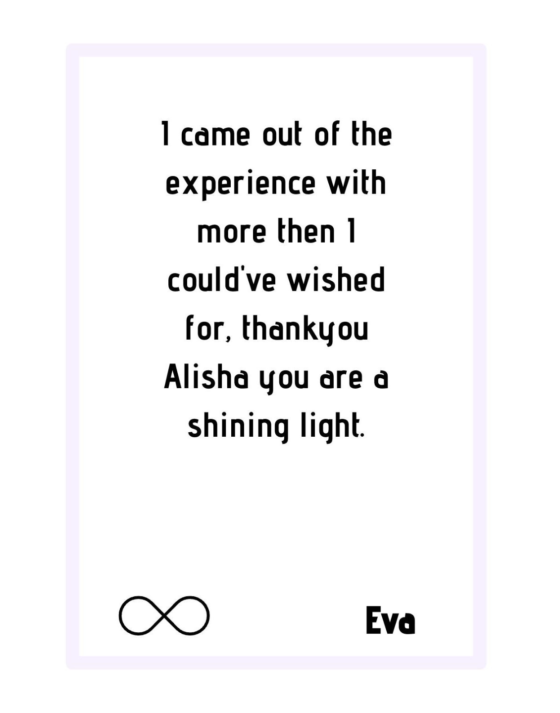 I have experienced a massive shift. Completely different to who I was when I first started working with you.